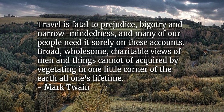 What I’ve learned is that travel is the best antidote to drinking too much from the local firehose. A population that doesn’t leave home much or bother to read books is where prejudice and ignorance floods the local culture. Populism becomes the lowest common denominator. International travel from America is expensive —-creating another barrier to mind expansion.
